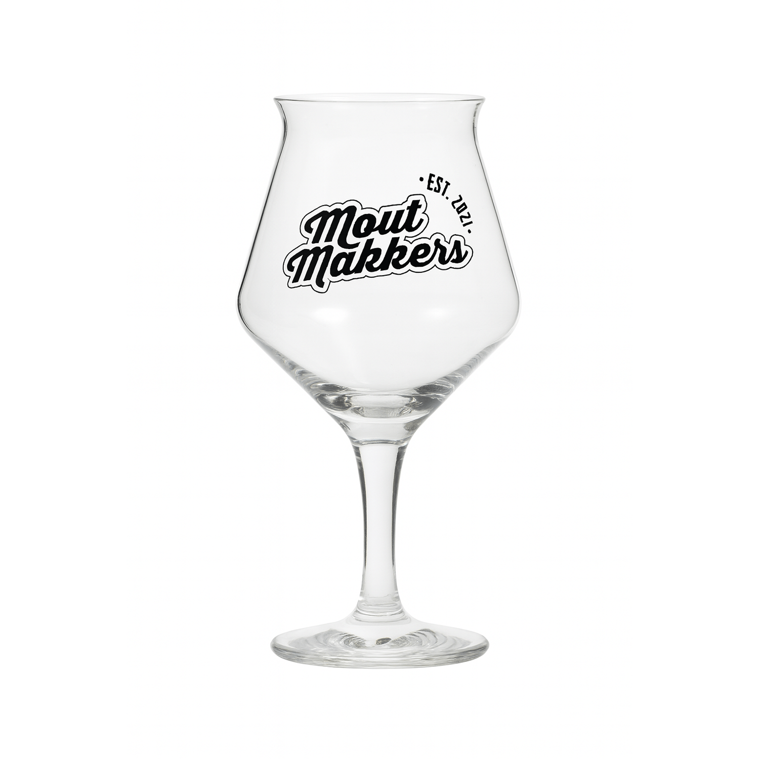 Ons speciaalbierglas is het ideale gezelschap voor ieder biertje uit onze brouwerij. Met zijn stevige voet, subtiel gebogen vorm en trots MoutMakkers-logo komt elk biertje volledig tot zijn recht – vol schuim, vol smaak, vol beleving. Of je nu geniet van een frisse blond of robuuste tripel, dit glas maakt het moment compleet.